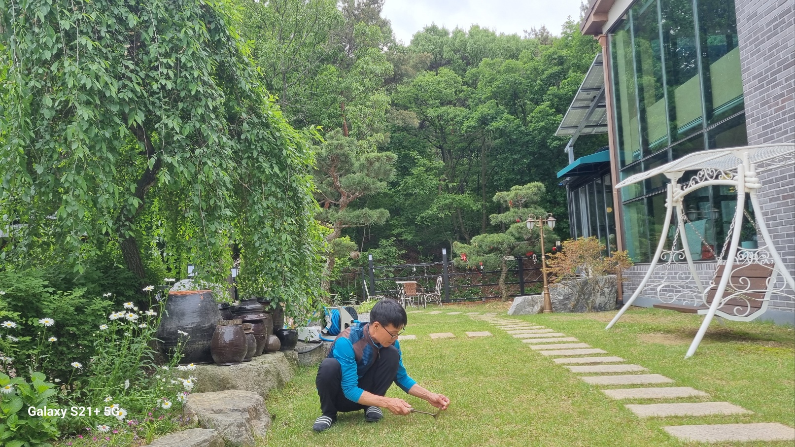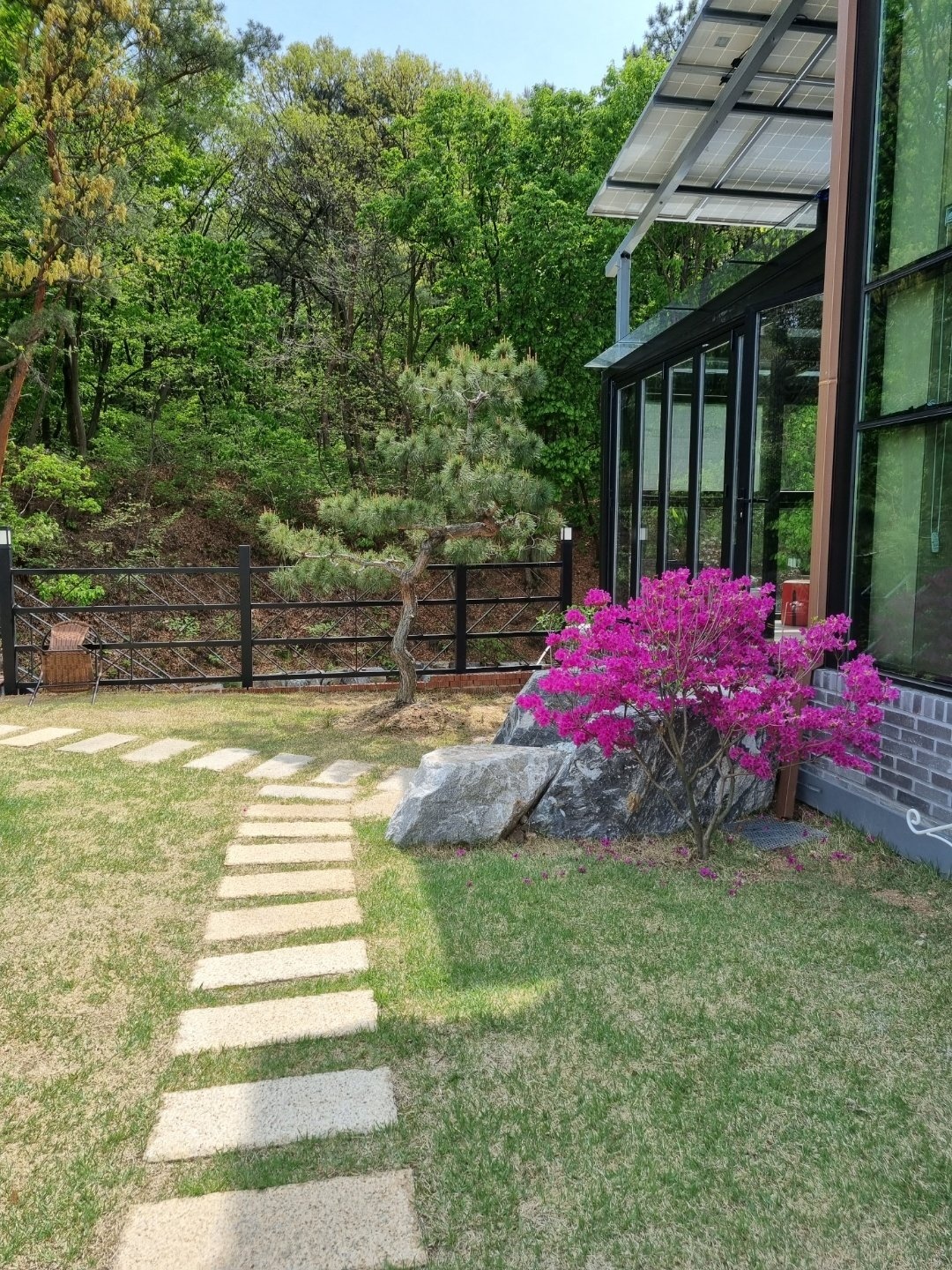 그래서 요즘 맞벌이 전원주택에서는 자갈을깔거나 인조잔디를 이용하고 있는