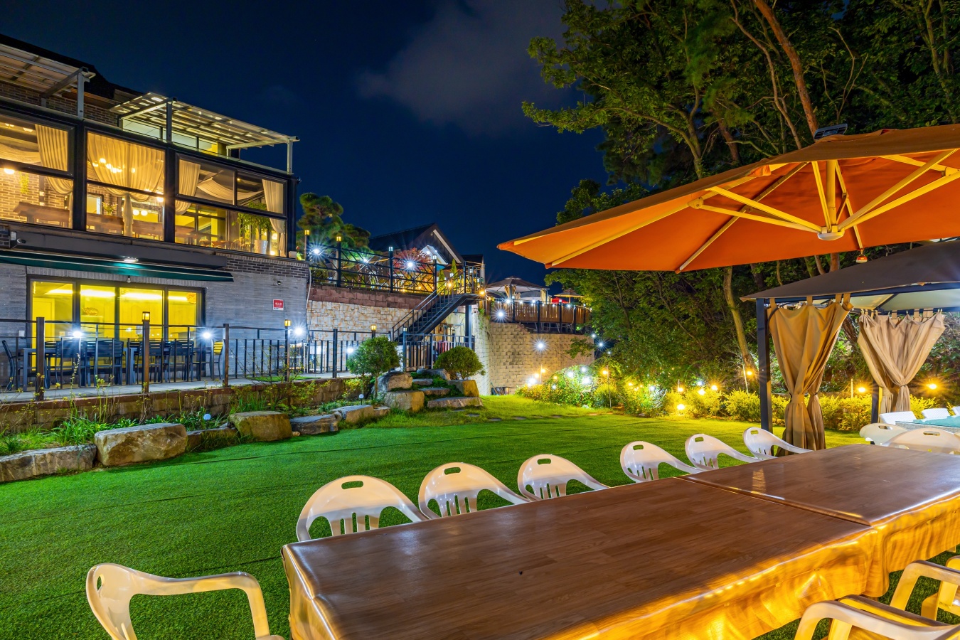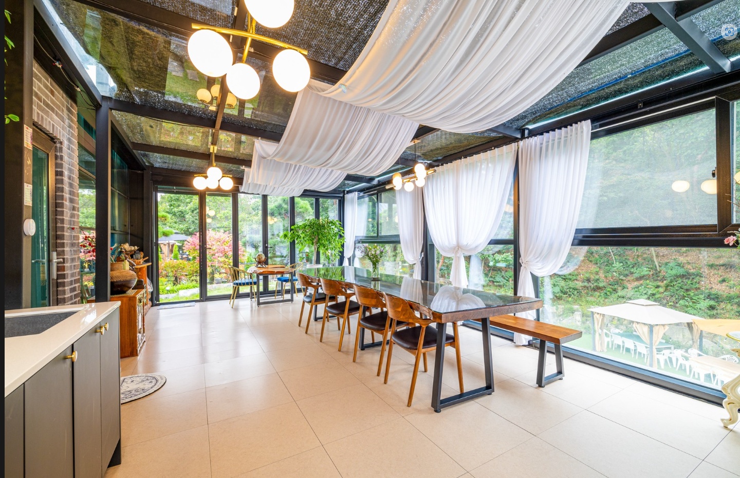 야외 바베큐와 즐거운 파티룸 공간